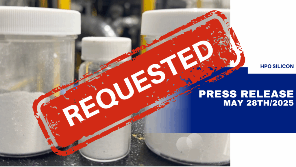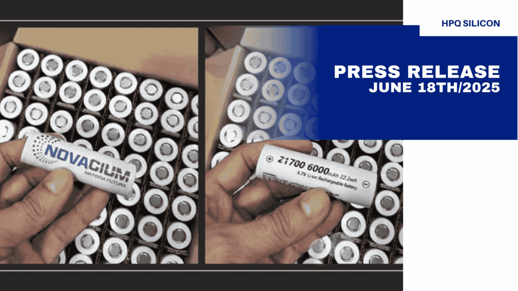 All Media Types Press [Releases] Blogs [insights] Video [Interview] Coverage [Featured] CategoriesVideo October 24, 2025 HPQ CEO Discusses Fumed Silica Pilot Progress and Path to Commercialization CategoriesPress Release October 23, 2025 HPQ Completes Latest Fumed Silica Pilot Test, Moves Closer to Achieving Highest Material Grades CategoriesVideo October 9, 2025 HPQ CEO Speaks at $22M Federal Battery Innovation Announcement in Montreal CategoriesVideo October 2, 2025 HPQ CEO Discusses Industrial Shipments of GEN3-Based HPQ ENDURA+ Battery Cells CategoriesPress Release September 30, 2025 HPQ Silicon Confirms Completion and Shipment of First Industrial Batches of HPQ ENDURA+ Battery Cells CategoriesBlog September 18, 2025 Spoofing and Layering on $HPQ Stocks: When the Numbers Confirm the Manipulation CategoriesBlog September 16, 2025 Repetitive. Blatant. Manipulative. It’s Time to Act. CategoriesVideo September 12, 2025 HPQ CEO Talks $3M Federal Funding, Scale-Up, and Supply Chains CategoriesPress Release September 11, 2025 HPQ Awarded Up to $3M in Federal Funding to Fast-Track Commercialization of Silicon-Based Battery Materials Page1 Page2 Page3 Page4 Page5 CategoriesPress Release July 3, 2025 HPQ’s Latest Pilot Test Delivers Higher-Purity, Higher-Quality Fumed Silica While Validating Semi-Continuous Reactor Operation CategoriesPress Release June 18, 2025 Novacium Launches Industrial Production of High-Performance Batteries Incorporating Its Silicon-Based Anode Material CategoriesPress Release June 12, 2025 Leading Global Manufacturer Confirms First Batch of Pilot Plant Material Tested is Fumed Silica CategoriesPress Release June 10, 2025 HPQ, Novacium, and Pragma Industries Sign Agreement for Commercial and Industrial Green Hydrogen Production Using METAGENE™ Technology CategoriesPress Release May 28, 2025 Leading Global Manufacturer Requests HPQ’s First Batch of Fumed Silica for Evaluation CategoriesPress Release May 21, 2025 Independent Analysis Confirms HPQ’s Pilot-Scale Fumed Silica Production CategoriesPress Release May 16, 2025 HPQ Silicon Reinstated for Trading CategoriesPress Release May 15, 2025 HPQ Fumed Silica Pilot Produces Significant Material Volumes in Key Milestone CategoriesPress Release May 6, 2025 HPQ Silicon has Submitted Response Letter to the “Autorité des Marchés Financiers” (AMF) Page1 Page2 Page3 Page4 Page5 CategoriesVideo May 18, 2025 HPQ CEO Talks Trading Reinstatement & Fumed Silica Milestone—on AGORACOM CategoriesVideo April 11, 2025 HPQ CEO Discusses the Strategic Hydrogen Partnership with GLD Alloys—on AGORACOM CategoriesVideo March 25, 2025 HPQ CEO explains significance of Fumed Silica Reactor pilot plant morphological test results CategoriesVideo March 20, 2025 HPQ CEO Discusses 1,000-Cycle Battery Milestone with AGORACOM CategoriesVideo March 14, 2025 HPQ CEO Discusses U.S.-Canada Tariffs and the Future of Domestic Fumed Silica Production CategoriesVideo February 28, 2025 [Video] HPQ CEO Discusses First Successful Batch Production at Fumed Silica Pilot Plant CategoriesVideo February 20, 2025 [Video] HPQ CEO Discusses New Cathode Battery Material Patent—on AGORACOM CategoriesVideo February 7, 2025 [Video] HPQ CEO Discusses Breakthrough Battery Results and HPQ’s Increased Equity Stake—on AGORACOM CategoriesVideo January 29, 2025 [Video] HPQ Silicon CEO Discusses Novacium’s Breakthrough Waste-to-Energy Technology—on AGORACOM Page1 Page2 Page3 Page4 Page5