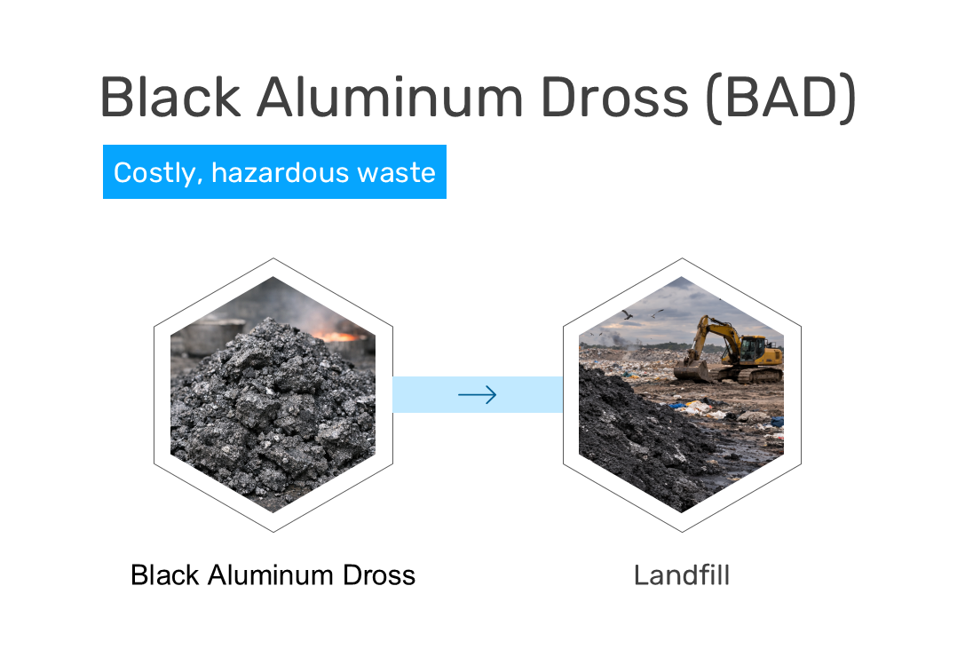Black aluminum dross (BAD) is a toxic byproduct generated during aluminum recycling.