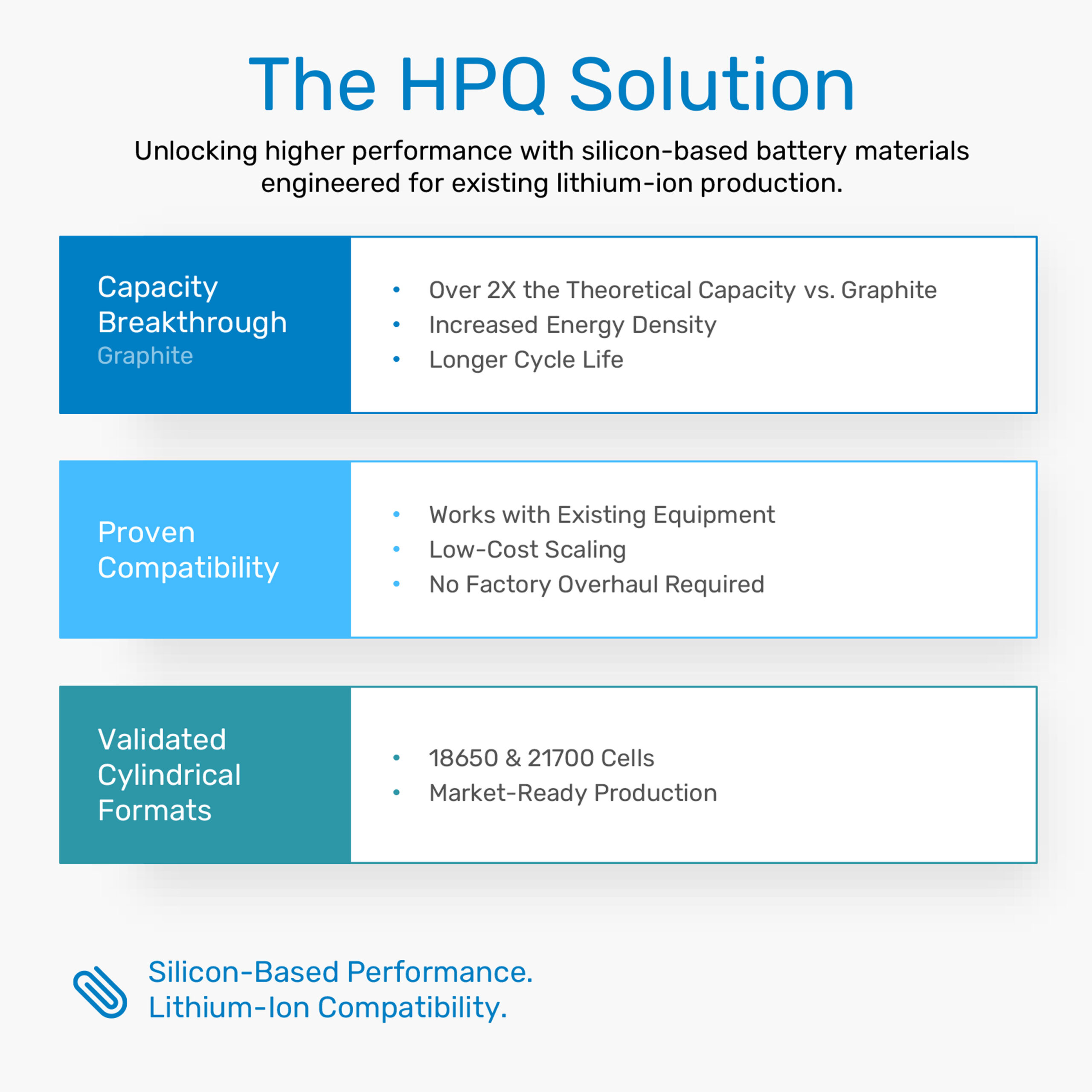 HPQ’s battery platform integrates advanced silicon-based anode materials with commercially qualified lithium-ion cell manufacturing.