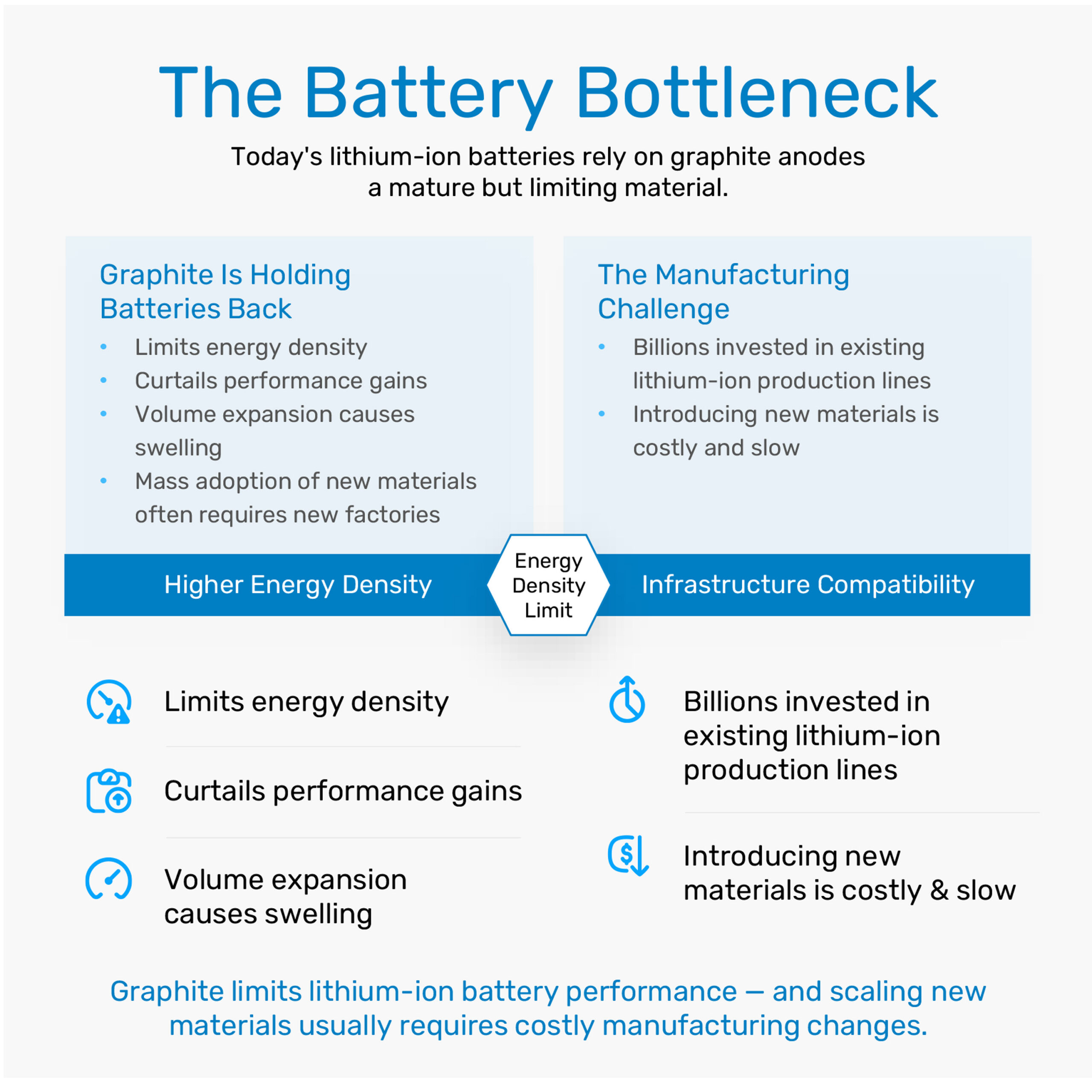 Silicon has long been recognized as a superior anode material due to its significantly higher theoretical capacity than graphite. However, traditional silicon solutions have struggled with swelling, degradation, and manufacturing compatibility.