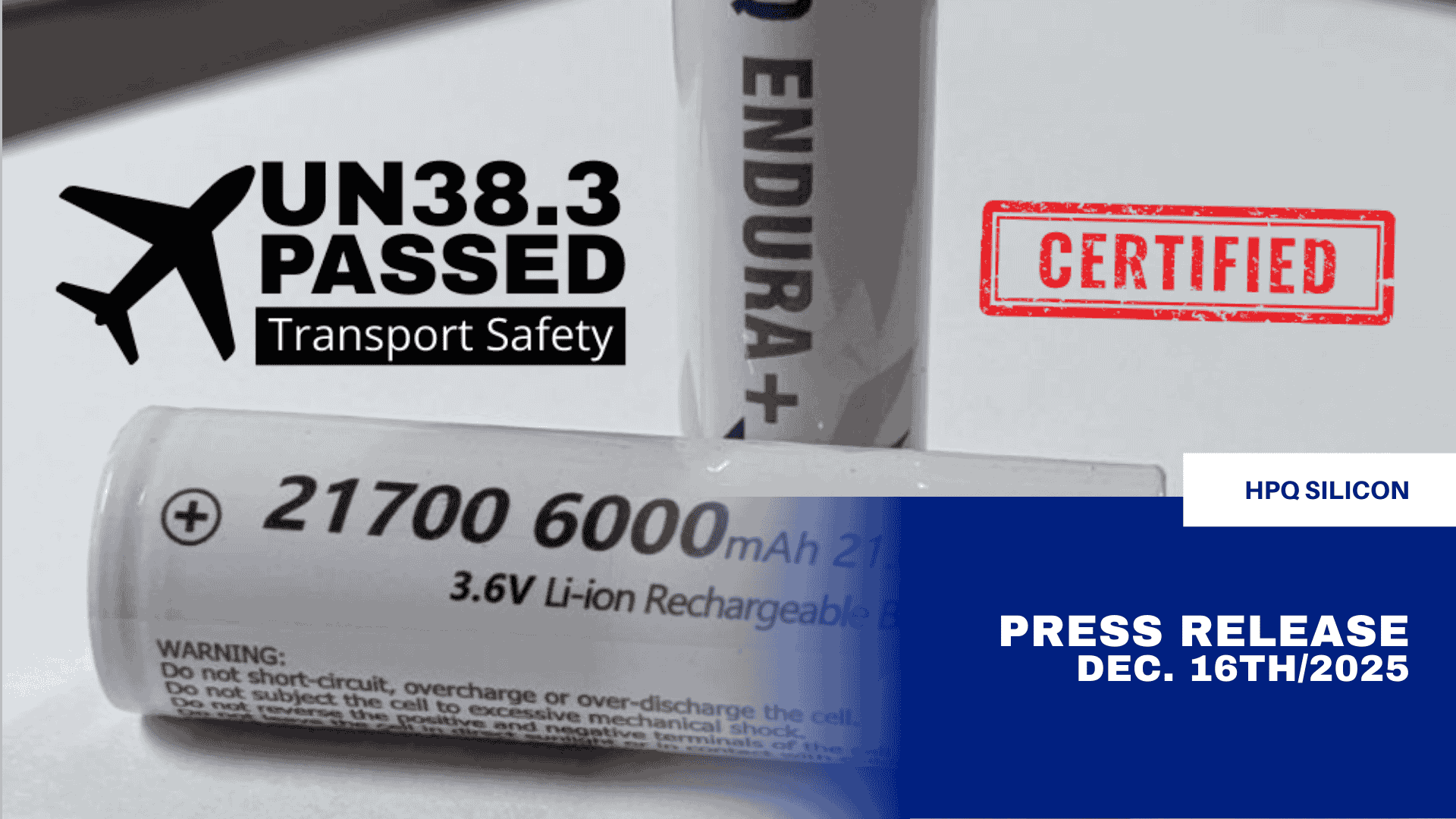 December 16, 2025by Team HPQ HPQ Silicon Secures UN 38.3 Certification for HPQ ENDURA+ 18650 & 21700 Cells